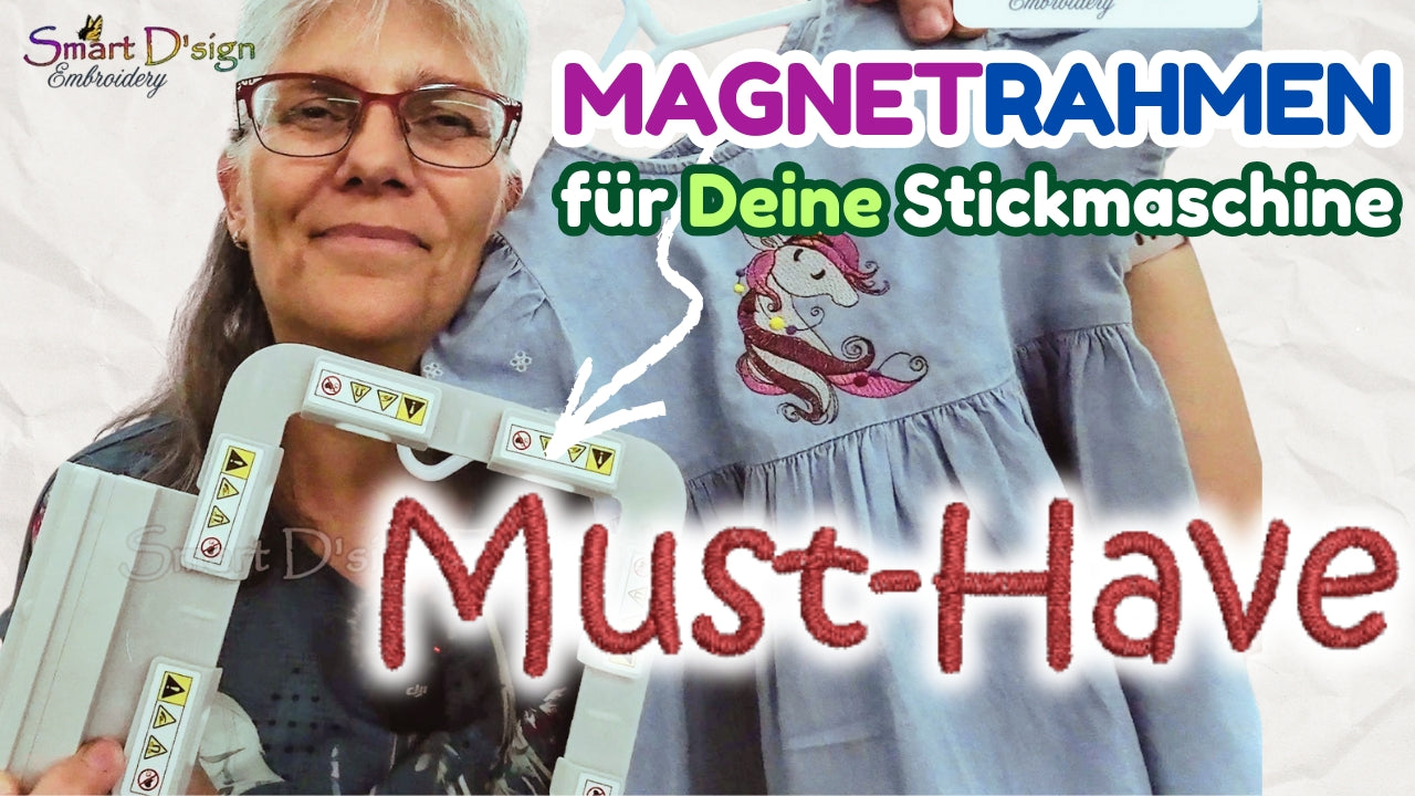 In meinem neuesten YouTube Video teste ich den SewTech Magnetrahmen für Haushaltsstickmaschinen. Ich nutze den 10x10 cm Rahmen und meine Brother In-Novis NV2600, und besticke ein Kinderkleidchen mit einem meiner Motive aus dem Shop.