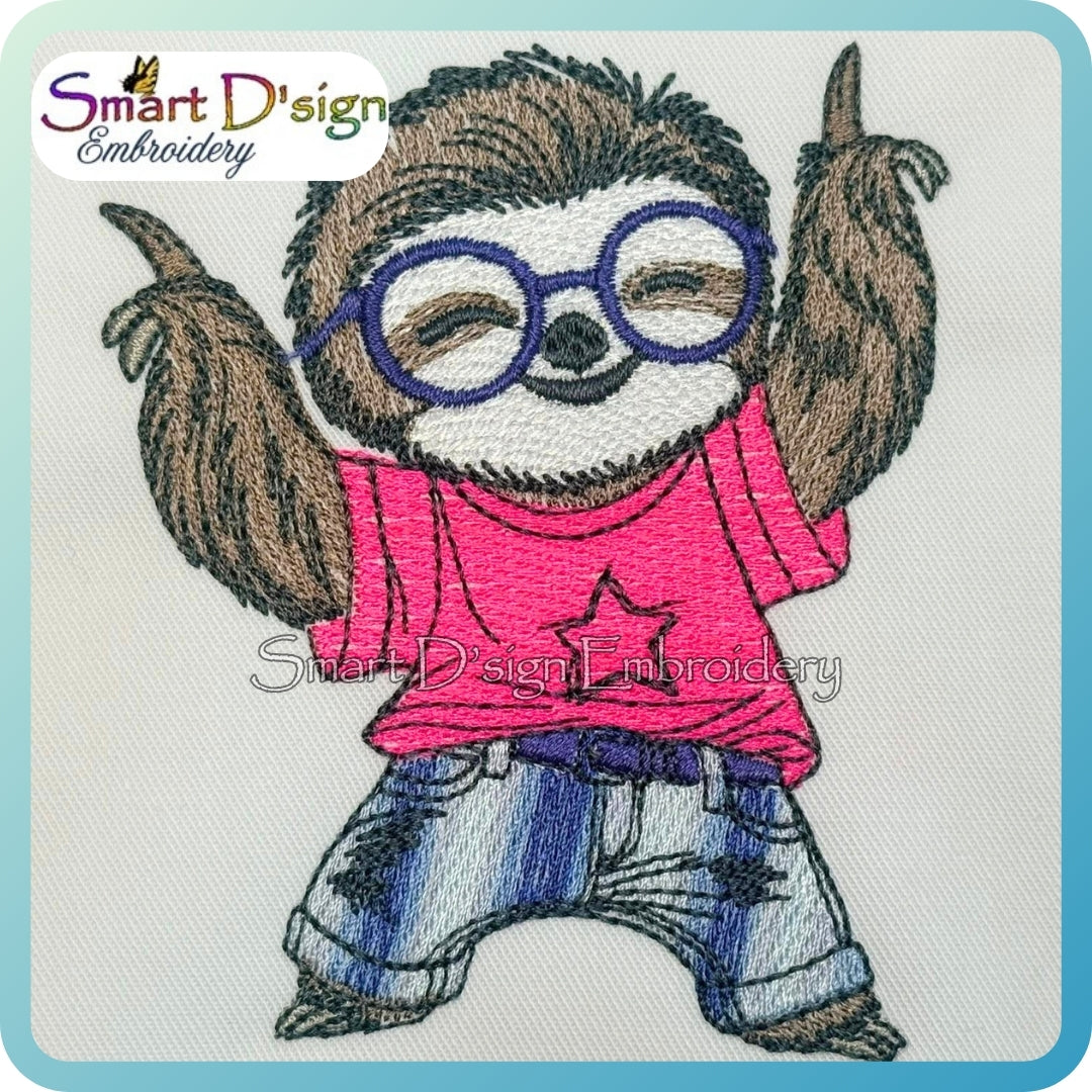 Fröhliches tanzendes Faultier – ein kleines, charmantes Motiv mit ganz viel Persönlichkeit.