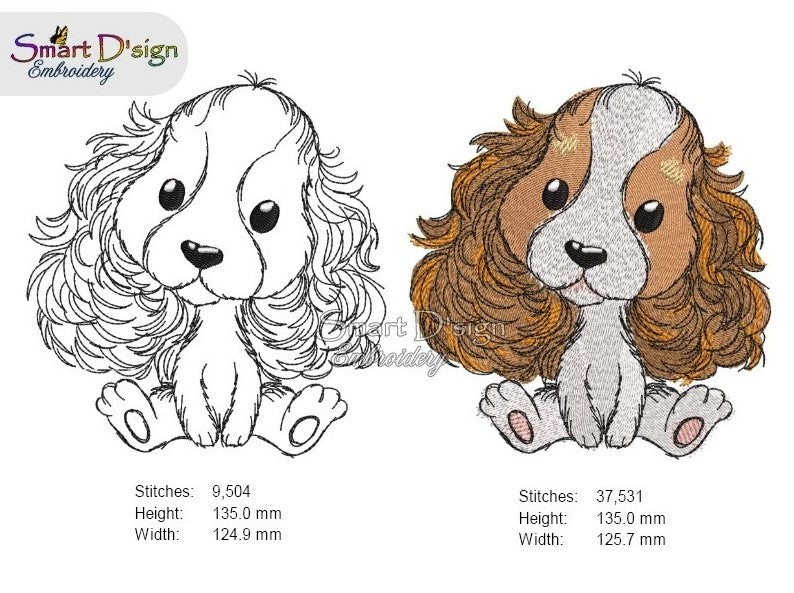 CAVALIER KING CHARLES SPANIEL - Build A Puppy - Set with 16 embroidery designs