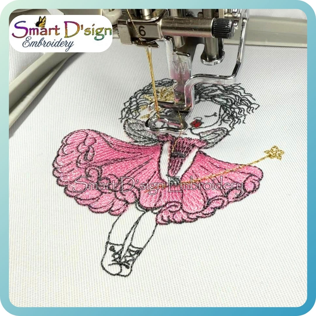The little Fairy has been digitised for you to add Mylar for the extra sparkle. This makes the motif so adorable.