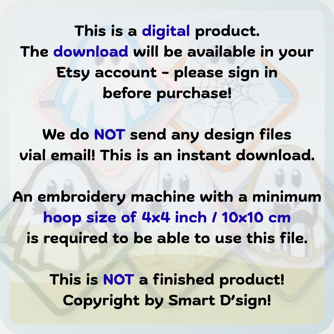 This bookmarks are all done in-the-hoop without any sewing on your sewing machine required. You will need a hoop size at least 4x4 inch / 10x10 cm to use these designs. The size of each finished bookmark is about 8.5 x 8.5 cm.